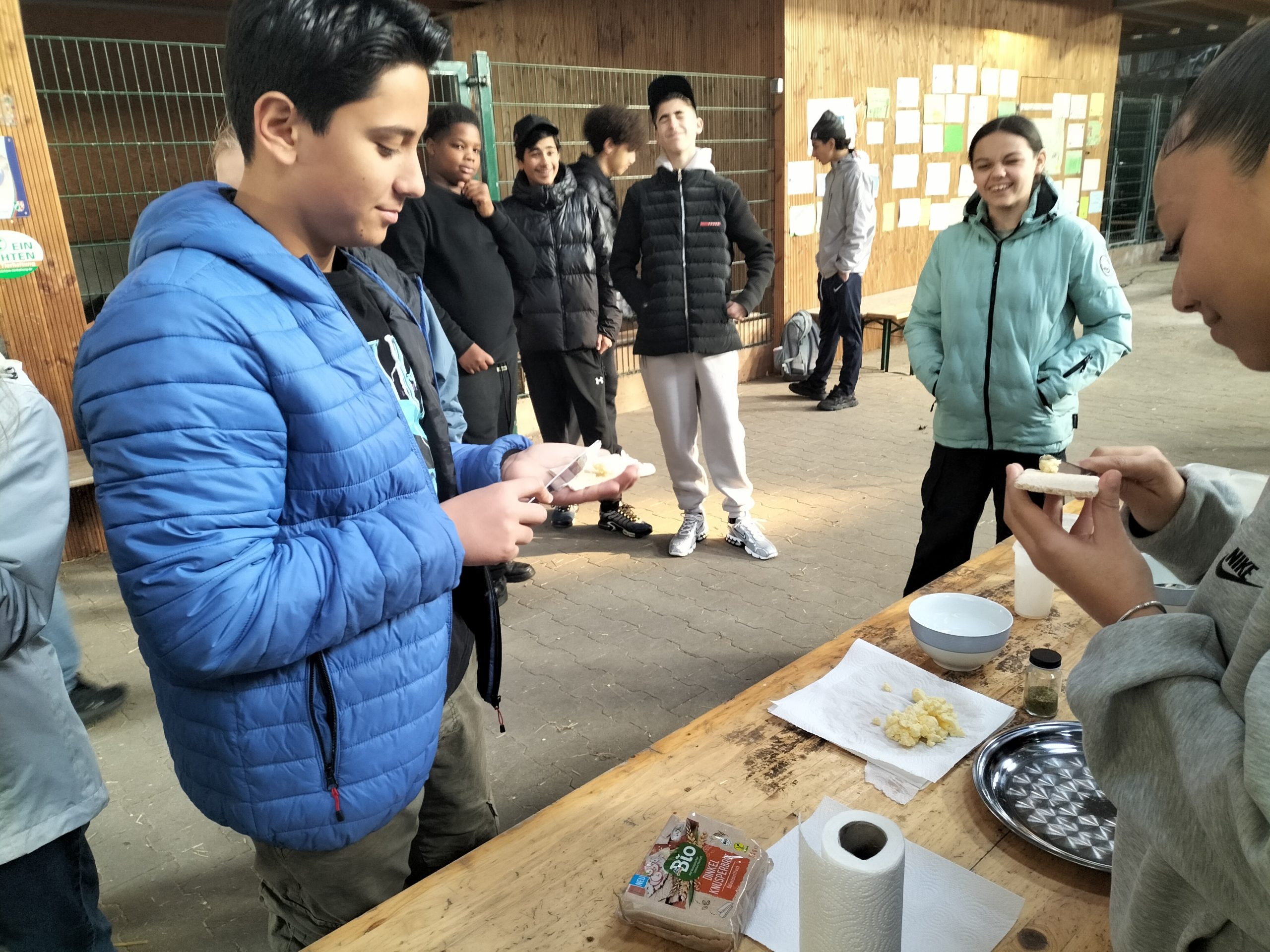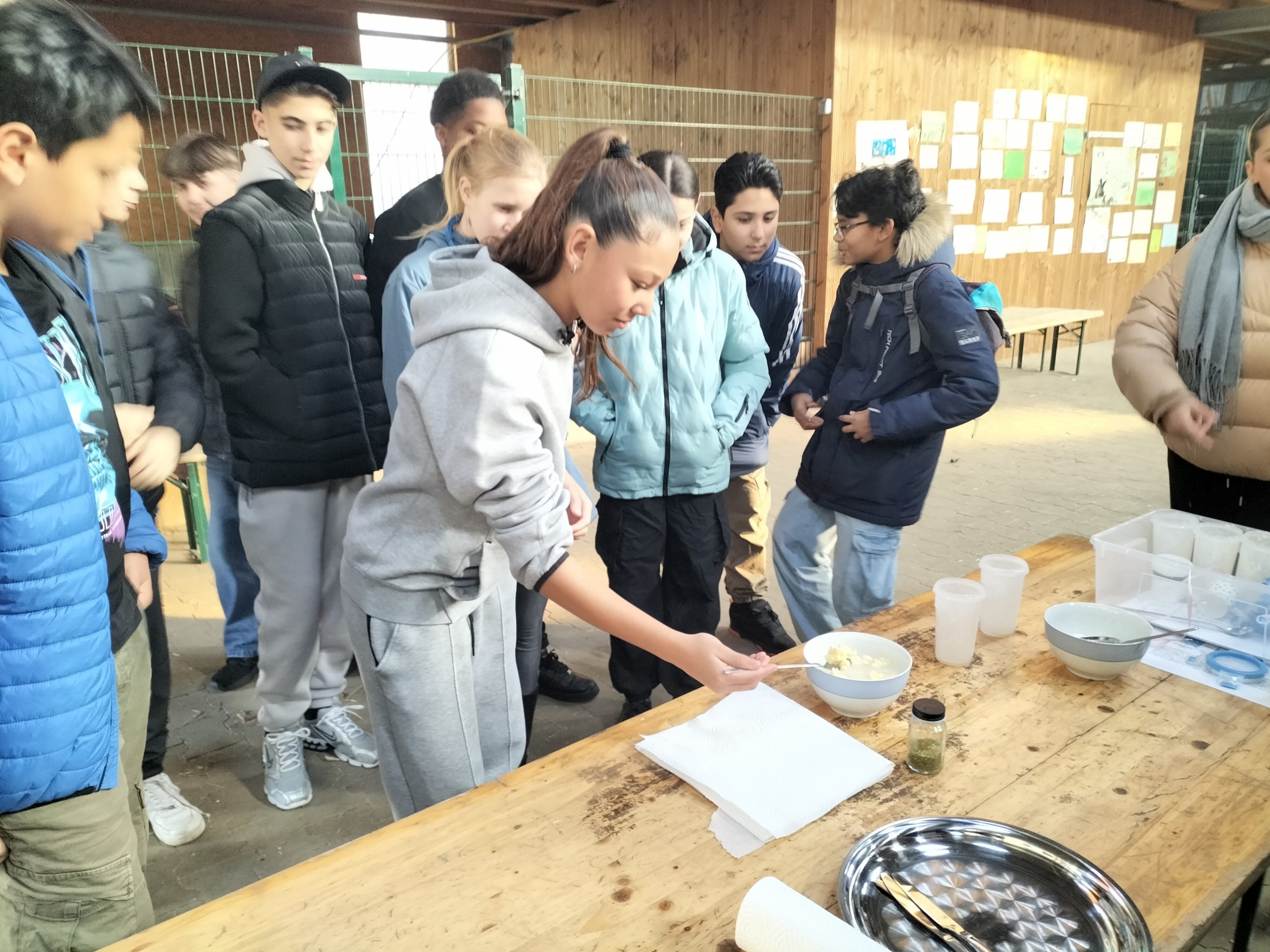 Die Klasse 8e hat im November 2025 den Bauernhof Gut Hixholz besucht und dabei ihre eigene Kräuterbutter hergestellt.