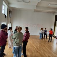 Die Schülerinnen und Schüler des Kompetenzförderkurses Theater machten sich am 21.2.24 auf den Weg zum Grillo Theater, um dort gemeinsam mit einer Theaterpädagogin einige praktische Übungen und inhaltliche Herangehensweisen zu erlernen. Alle schlüpften in die Rollen des Theaterstücks „Der gute Mensch von Sezuan“, um Szenen aus dem Stück selber zu interpretieren.